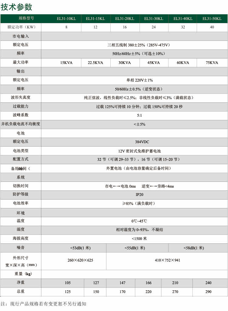 欧洛斯EL31系列三进单出工频在线式UPS,容量从10KVA~50KVA,应用了全数字化控制技术,功率器件选用低损耗大功率IGBT,过载能力强,具备完善的检测、保护功能;应用中英文大屏幕液晶触摸屏,标配RS232接口,可选配SNMP网络适配器卡或RS485卡等,实现对UPS集中监控及远程监控;具备RPA(冗余并联)功能,可实现10台UPS并机。